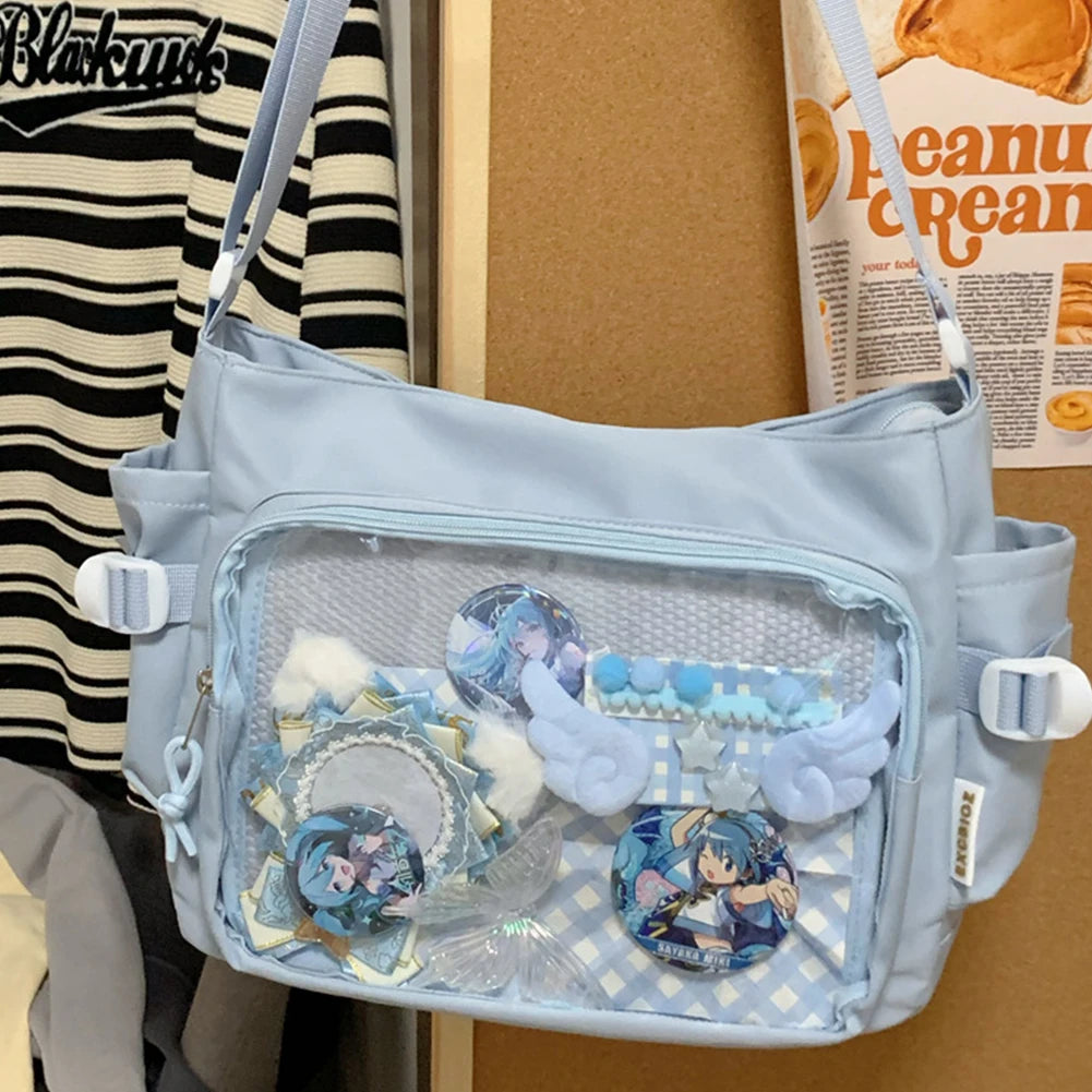 Japanese Y2K Lolita Transparent Shoulder Bag Women Trend Itabag Badge DIY Decoration Crossbody Bag Daily School Bag for Teenager