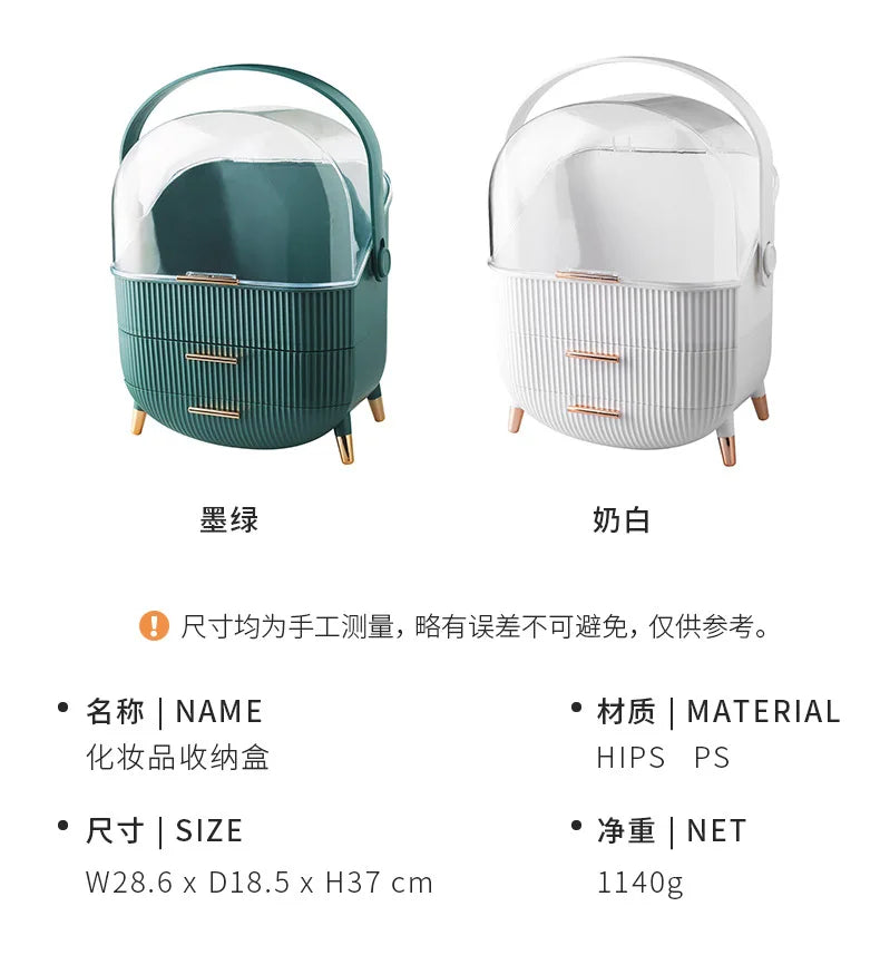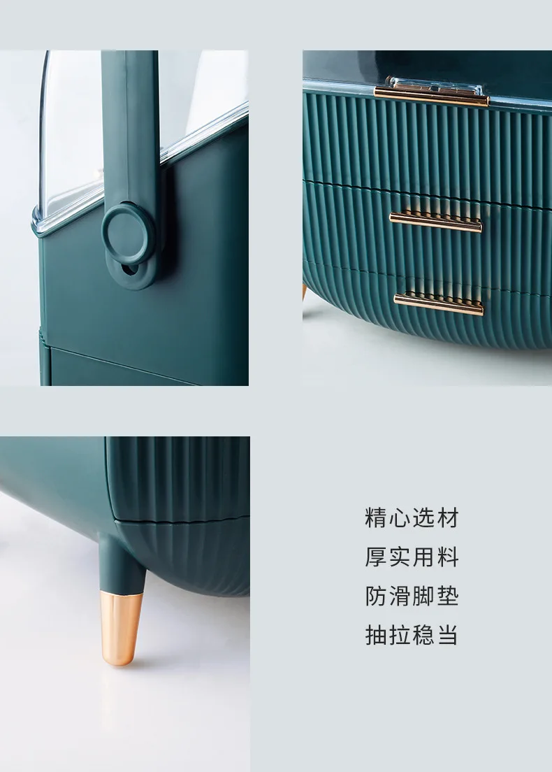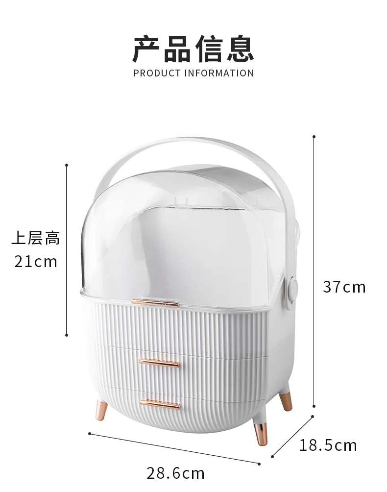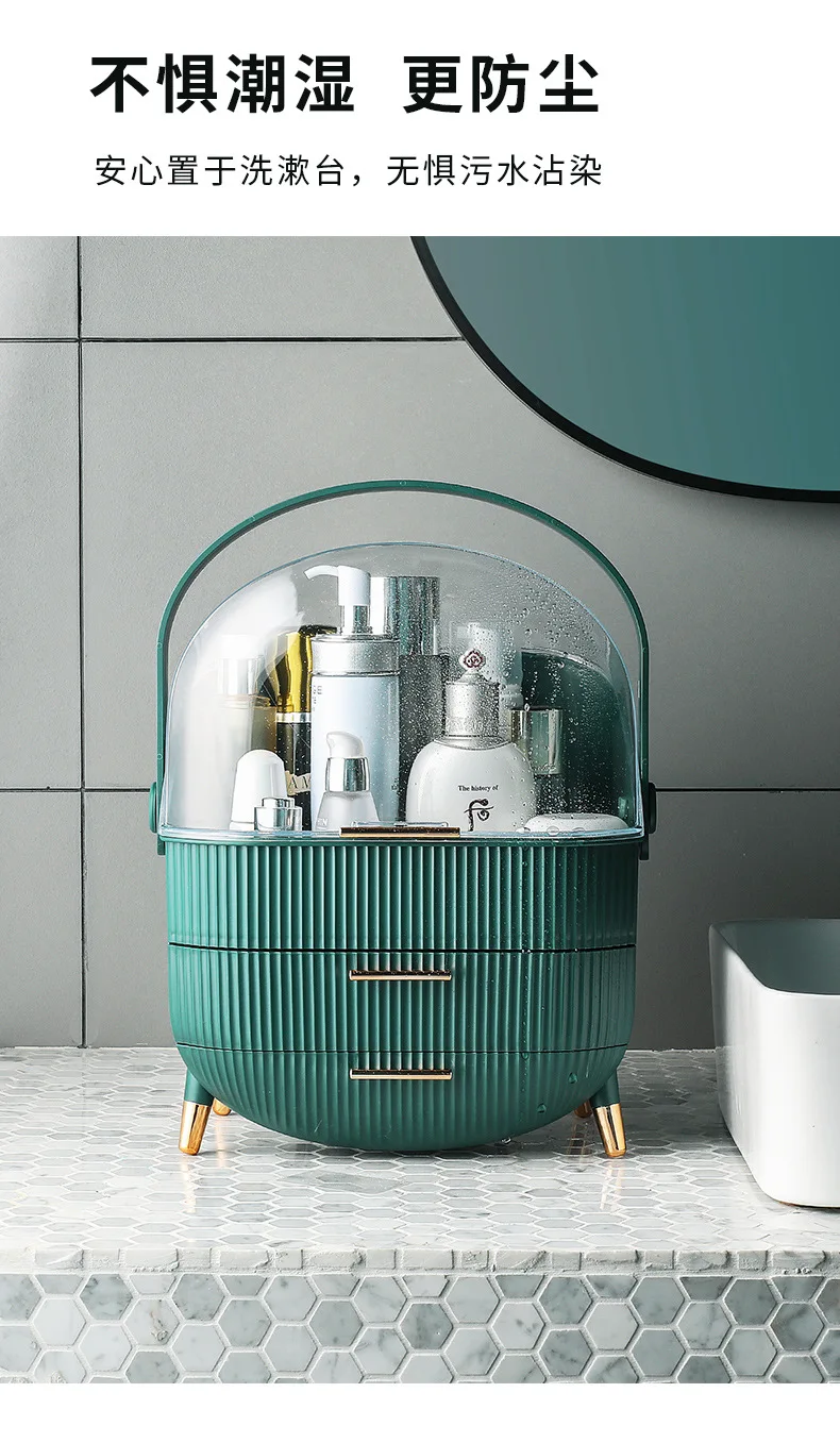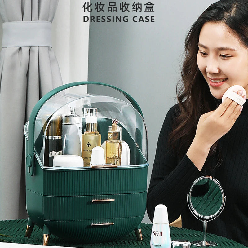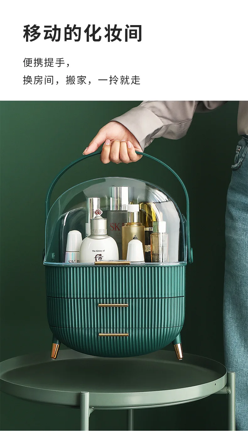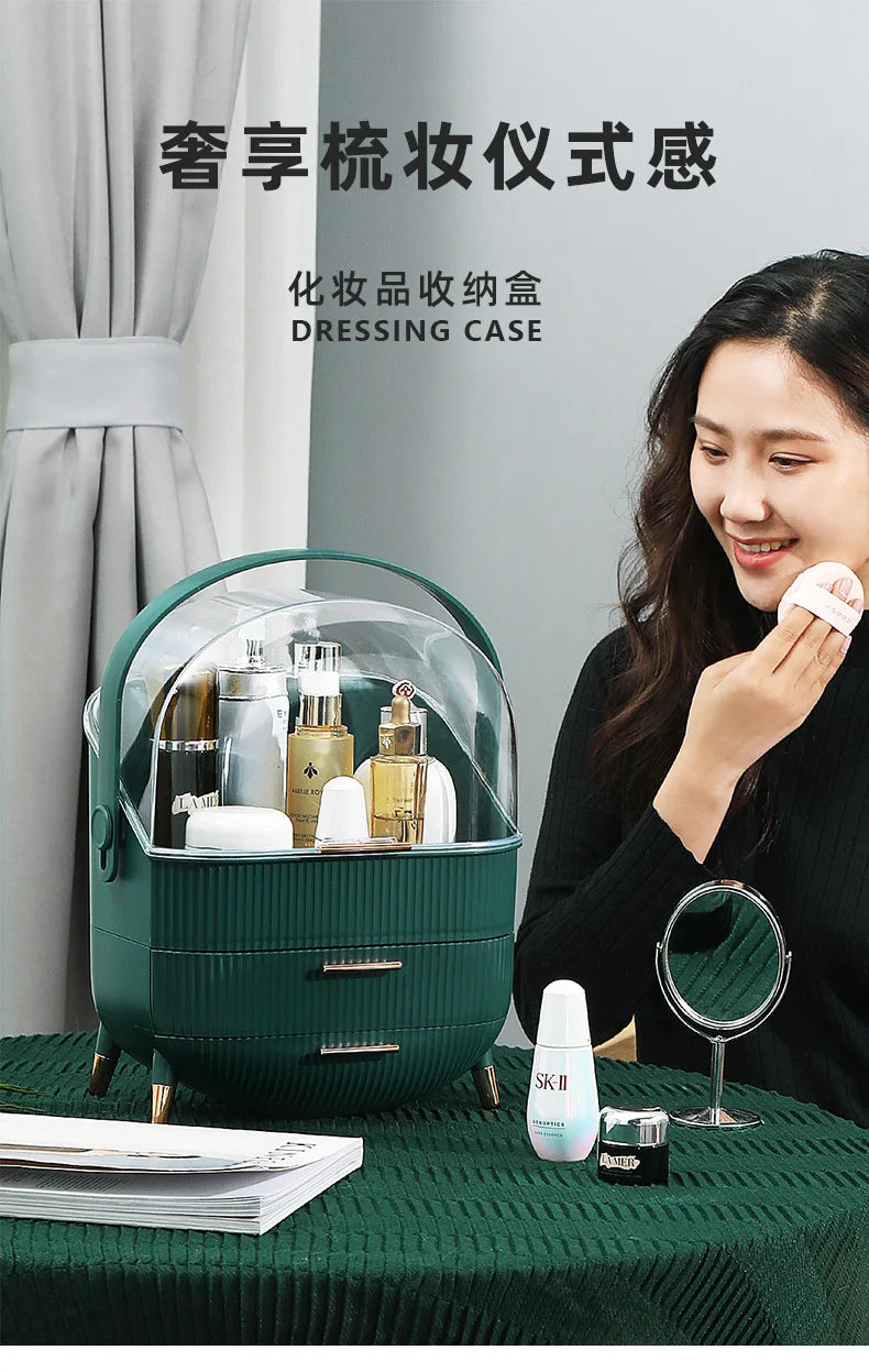 Luxury makeup storage box with lid, large-capacity dustproof cosmetic case for skincare products with handle